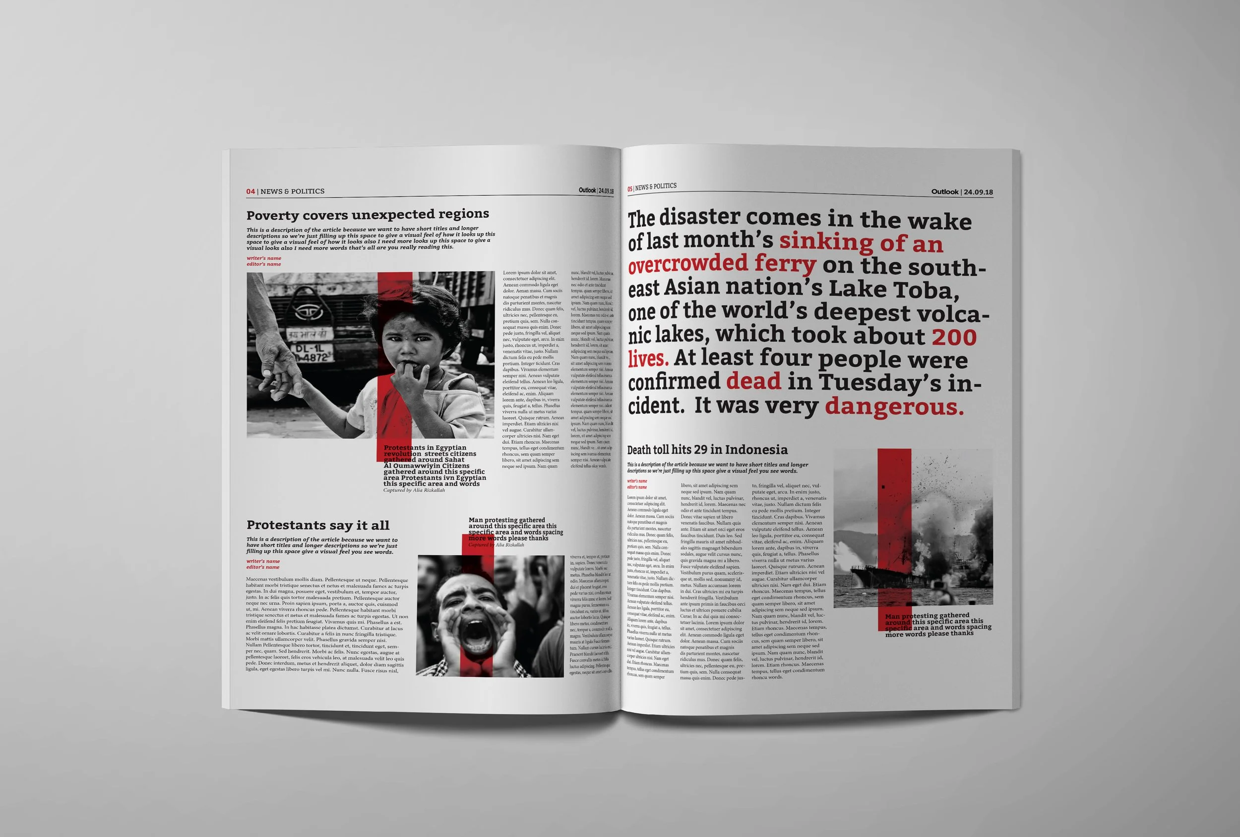 PrintA selection of posters, books, newsletters, and magazines. Software: InDesign. A promotional poster for an Arabic typography event. A pamphlet/poster for a fictional exhibition. A poster promoting Josef Muller Brockmann's work. A pamphlet/poster for an anti-pollution NGO. OUTLOOK | Newsletter Re-designing the independent student publication at university. Archives…